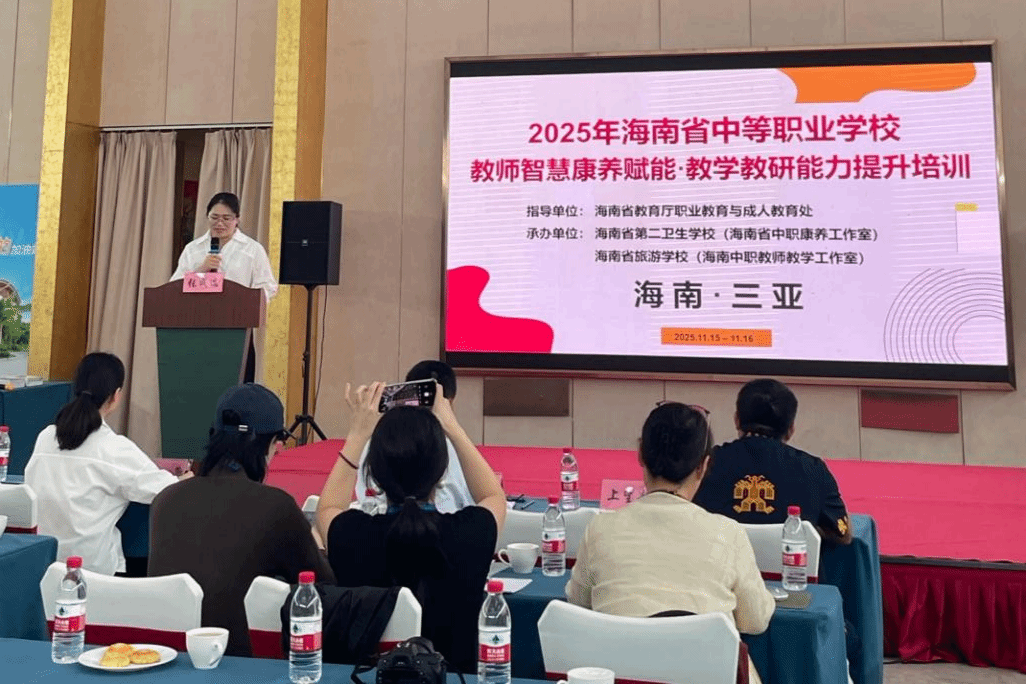 为推动中职教育数字化转型,提升教师教学创新与课题研究能力,2025年11月15日至16日,由海南省教育厅指导,海南省旅游学校(海南省中职教师教学工作室)、海南省第二卫生学校(海南省中职康养工作室)主办,太阳网集团tcy8722(国家级职业教育双师型教师培训基地)承办的“AI赋能・课堂重构・课题跃升”中职数字化转型与教学创新专题培训班在海南三亚成功举办。本次培训内容丰富多元,涵盖数字化教学、传统养生技能与课题研究实操,为参训教师带来全方位能力提升。