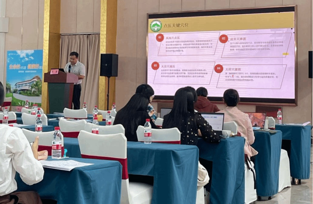 在耳穴压贴养生技术培训讲解中,廖宝珊主任详解耳穴定位原理与养生功效,实操演示压贴操作规范与常见病症调理方案,让教师掌握这一便捷实用的养生技能,可灵活应用于学生健康指导与日常保健教学。颈肩部养护推拿技巧模块针对性强,唐毅主任结合教师与学生常见颈肩劳损问题,讲授推拿基础手法与穴位配伍,通过手把手实操训练,使参训教师快速掌握安全有效的养护技巧,兼具自用与教学价值。符文林老师在讲解黎医药在外伤处理中的用法时,挖掘传统黎医药特色优势,介绍外伤处理的经典方剂与实操流程,强调原生态疗法的安全性与实用性,为中职护理、康养专业教学补充特色技能内容。