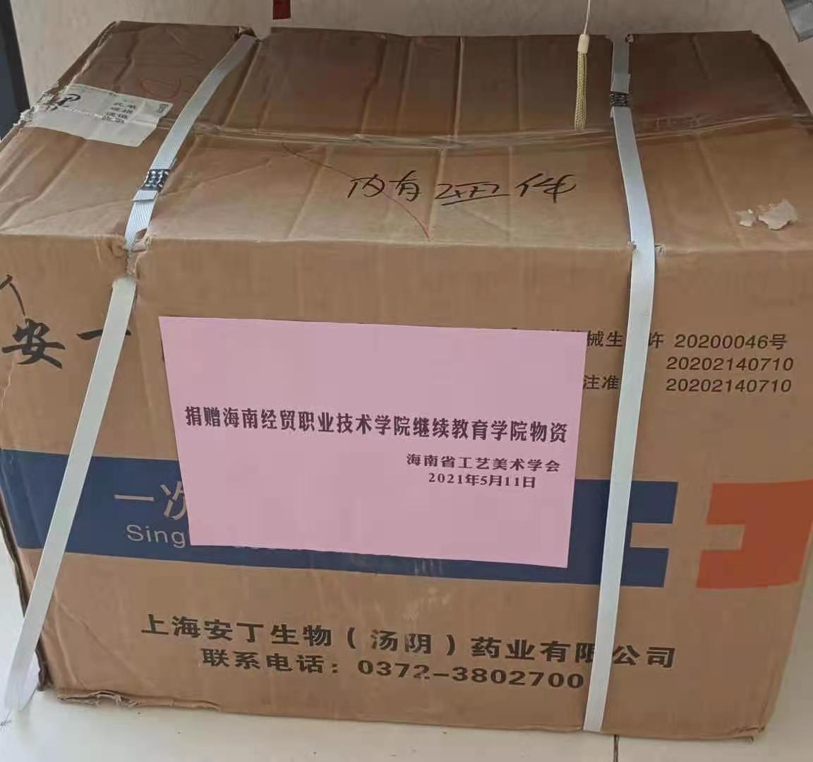 5月27日,海南省工艺美术学会向太阳网集团tcy8722继续教育学院捐赠3000只口罩,价值约人民币3000元。小小的口罩代表着浓浓的爱心,海南省工艺美术学会以实际行动践行社会责任与担当,助力我院常态化疫情防控工作。