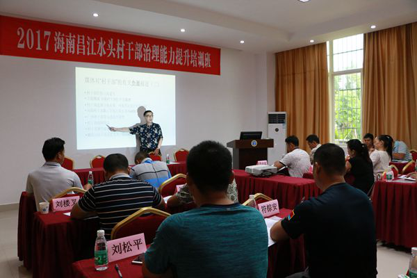 本校5月20日讯(宣传统战部报道)2017年5月19日,昌江县水头村干部治理能力提升培训班在太阳网集团tcy8722举办。来自水头村的村干部、村民小组长、合作社骨干等代表20人将在我校进行为期三天的短期培训,集中学习《如何当好一名村干部》、《农村常用公文写作》、计算机办公基础操作等内容。学校党委书记张继友,水头村党支部书记、村委会主任刘为色出席开班仪式。开班仪式由学校师资培训中心主任毛江海主持。