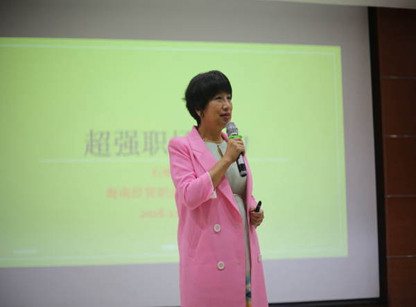 石咏琦说,“超级职场魅力”主要体现在仪表魅力、人格魅力和特感魅力等三个方面,强调仪表魅力要有正确地着装礼仪,人格魅力关键是学会聆听、微笑和关怀。她向同学们推荐了《快思慢想》《安静的力量》《觉察力》等书籍,有助于培养职场魅力。