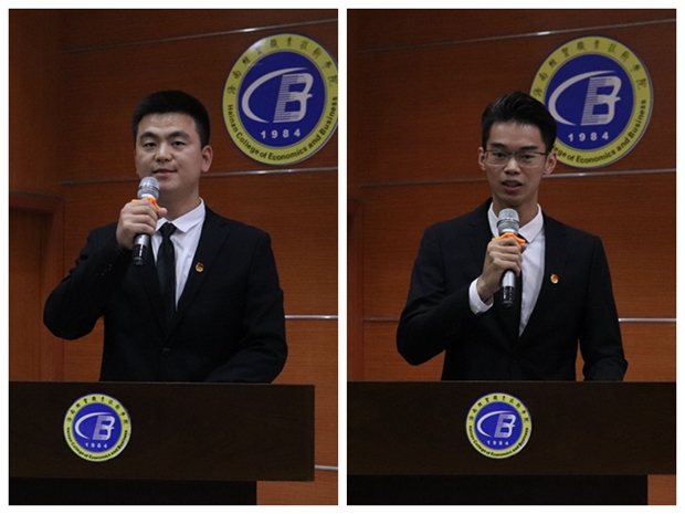 开班典礼上,校团委学生副书记潘建洲、财务管理学院18级财务管理1班团支书段猛凯分别代表“青马工程”二期和一期学员发言。他们表示,将坚定理想信念,做马克思主义的坚定拥护者、实践者和积极传播者,努力成长为“模范表率、堪当重任”的青年马克思主义者,为学校发展贡献力量,为实现中华民族伟大复兴的中国梦而不懈奋斗!