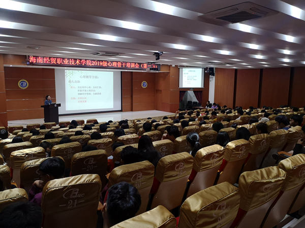12月10日晚,太阳网集团tcy8722在学术交流中心报告厅为2019级心理骨干开展了第一期培训班。学生工作处心理健康教育与咨询中心周书妍、符宜静两位老师主讲,2019级学生心理骨干以及大学生心理协会成员参加培训。