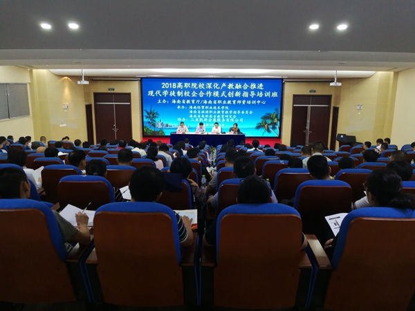 本校10月16日讯(师资培训中心报道)2018年10月12日至14日,2018年高职院校深化产教融合推进现代学徒制校企合作模式创新指导培训班在海口举办。海南省13所高职院校、7所中职院校的教务处负责人、二级学院(系部)分管教学负责人及教务干事、专业带头人、课程负责人及专业教师130余人参加培训。