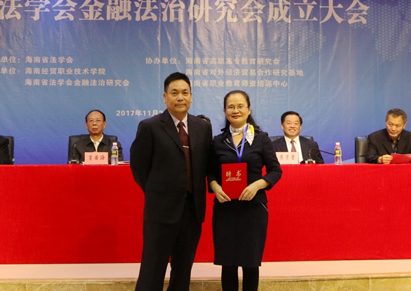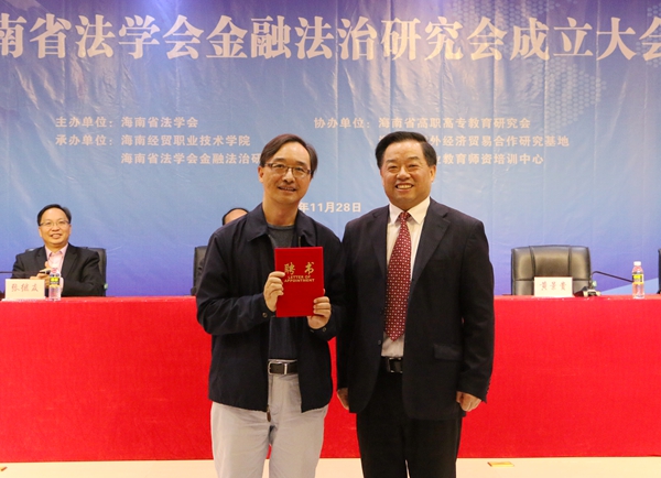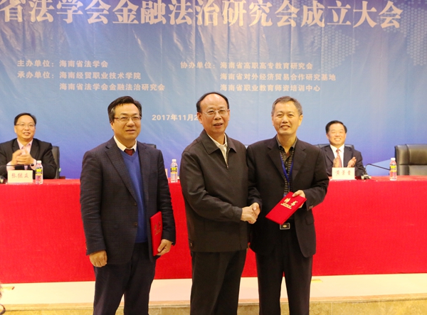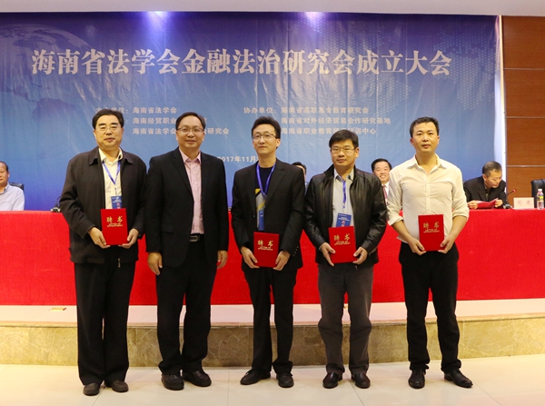 海南省法学会金融法治研究会成立大会由海南法学会主办,太阳网集团tcy8722、金融法治研究会承办,海南省高职高专教育研究会、海南省对外经济贸易合作研究基地、海南省职业教育师资培训中心协办。