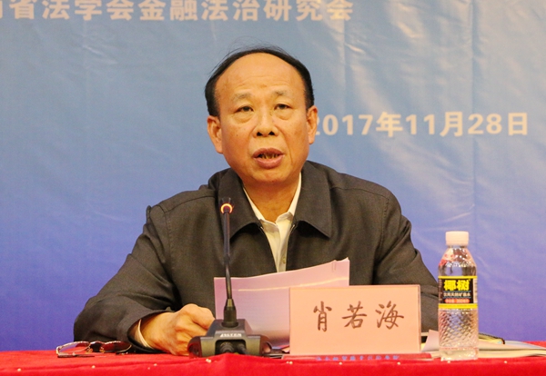 肖若海代表海南省法学会,对金融法治研究会的成立表示热烈祝贺。他指出,金融法治研究会的成立,着眼于海南金融法治的全局,为海南国际旅游岛经济发展提供强有力的智力支持,对于促进金融繁荣发展,推进金融改革,防范和化解金融风险,推进平安海南、法治海南、和谐海南建设具有十分重要的现实意义。他要求,一是把学习贯彻落实党的十九大精神作为金融法治研究会的首要政治任务;二是不折不扣贯彻落实十九大关于金融改革和创新的一系列决策部署,认真研究海南国际旅游岛金融法治建设和制度建设的重大问题,坚持正确地研究方向;三是广泛开展学术交流研究,充分发挥金融法治研究会独特优势和智库作用,为海南金融创新、司法实务提供学术保障;四是研究会要着重增强各位理事和研究会领导班子的政治意识、责任意识,切实加强研究会组织体系和研究机制建设,培养造就一支政治可靠、素质过硬、业务精湛的金融法治研究队伍。
