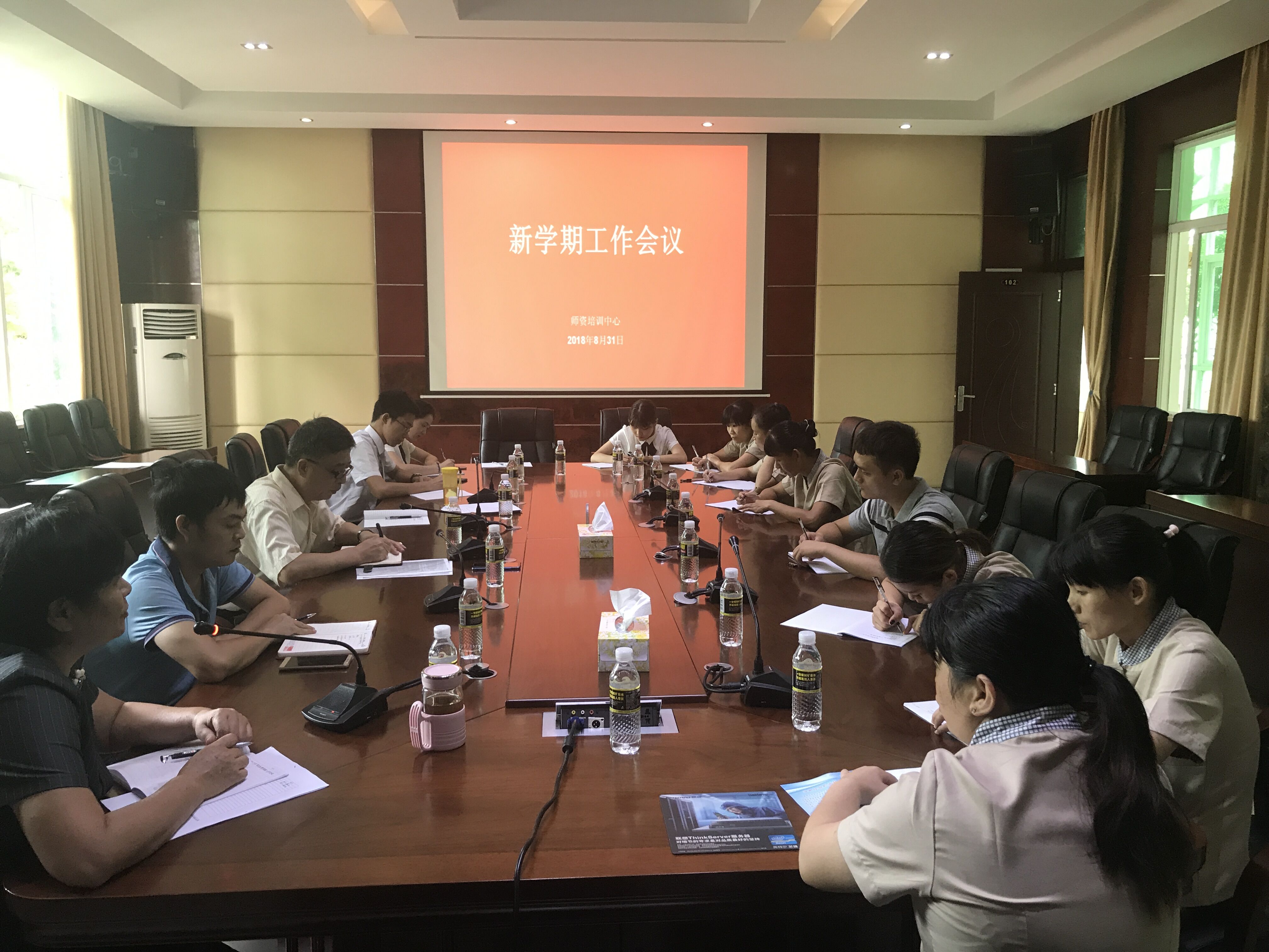 2018年8月31日,师培中心召开2018-2019学年度第一学期工作会议,会议总结了暑期工作情况,部署了新学期的部门工作。毛江海主任、符以福副科长、刘小丽经理等全体部门员工参加了会议。毛江海主持会议。