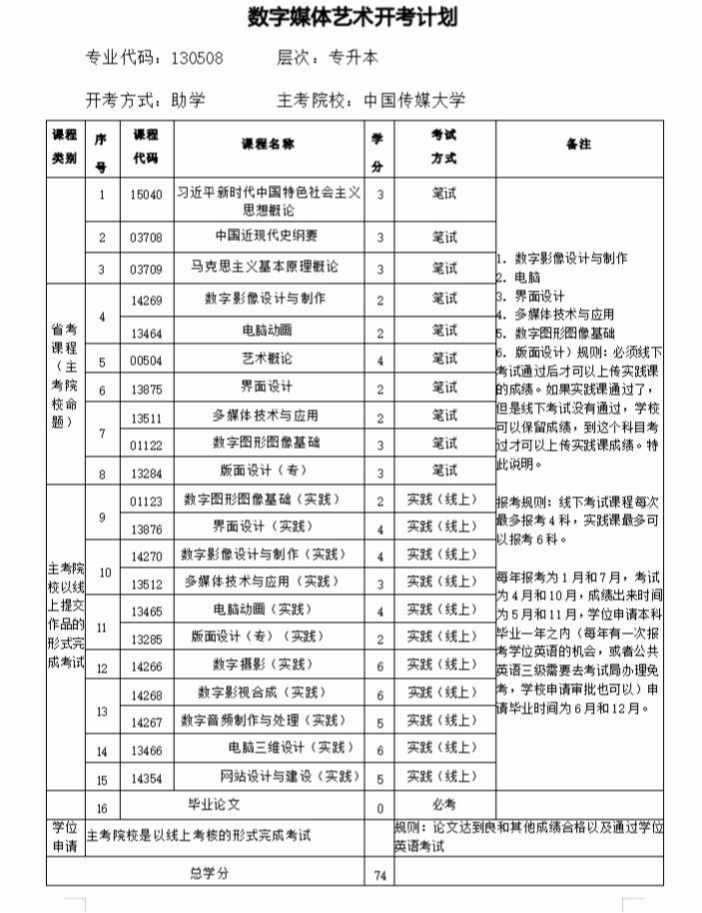 中国传媒大学是教育部直属的首批“双一流”建设高校,“211工程”重点建设大学,“985优势学科创新平台”重点建设高校。经海南省考试局批准,中国传媒大学作为海南省高等教育自学考试“数字媒体艺术(本科)(130508)”和“动漫设计(专科)(550116)“的主考学校,在海南省开展自学考试助学和招生工作。